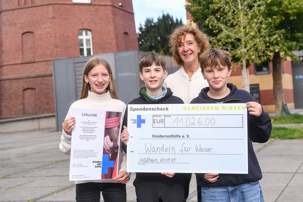 Jahr für Jahr liefert die Aktion „Wandern für Wasser“ verlässlich hohe Spendensummen. Auch 2025 wieder. So kann sich die Kindernothilfe über mehr als 11.000 Euro freuen, die der Verein für wasserwirtschaftliche Projekte in Burundi einsetzen kann. Mehr noch: die Summe, die sich aus Spenden von Familien und Freunden der Schüler*innen und den jeweils 3.000 Euro des Rotary Club Mülheim-Uhlenhorsts und RWW zusammensetzt, wird noch vervierfacht. Da das Bundesministerium für wirtschaftliche Zusammenarbeit und Entwicklung bei derartigen Projekten jedem gespendeten Euro drei hinzulegt, werden der Kindernothilfe insgesamt fast 45.000 Euro zur Verfügung stehen.